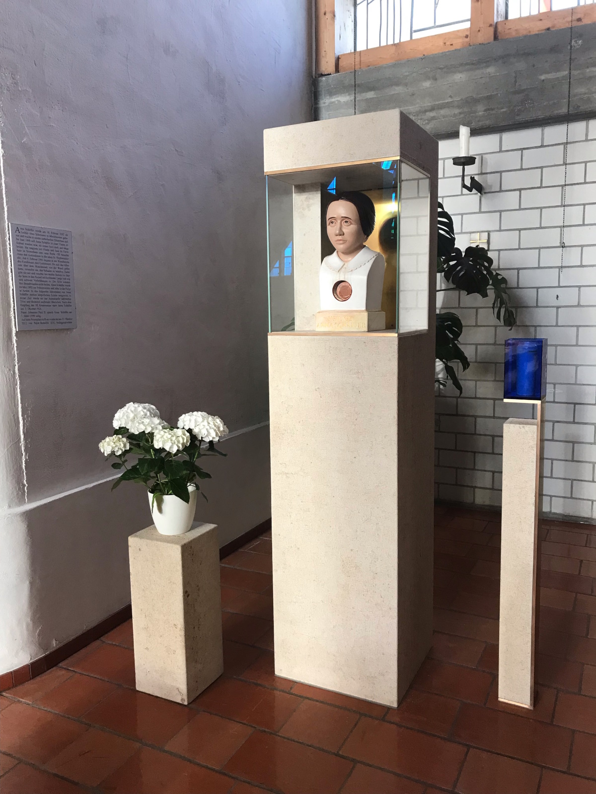 Die in einer Büste verwahrte Reliquie der Hl. Anna Schäffer ist nun in einer neu errichteten Stele in unserer Pfarrkirche St. Stephanus ständig präsent.